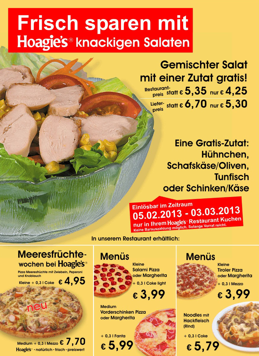 Bestellen Sie einen knackingen Salat, eine ofenfrische Pizza, einen